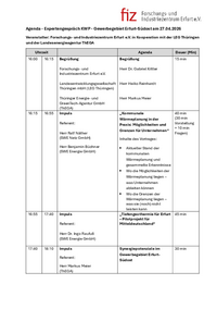 Agenda - Expertengespräch KWP - Gewerbegebiet Erfurt-Südost am 27.04.2026 Veranstalter: Forschungs- und Industriezentrum Erfurt e.V. in Kooperation mit der LEG Thüringen und der Landesenergieagentur…
